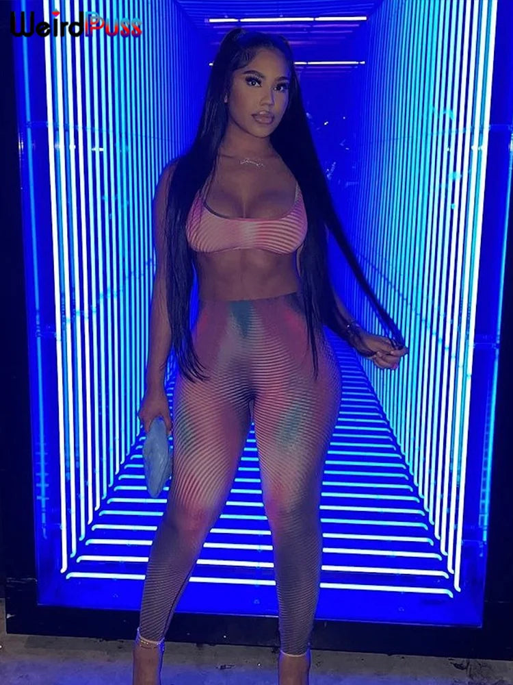 Weird Puss Gradient Print 2 Piece Set Women Skinny Striped Stretch Tank Tops+Leggings Matching Casual Sporty Streetwear Outfits
