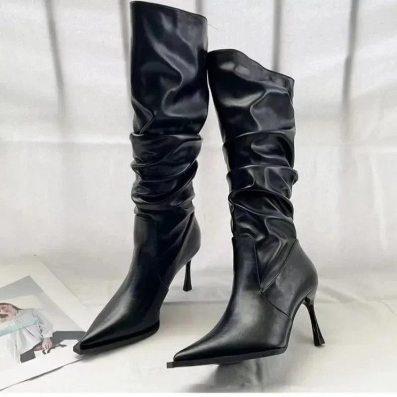Indulge in the luxury of our Women's Shoes, featuring knee high pointed toe boots. Designed for elegance and comfort, these boots are the perfect addition to any winter wardrobe. Elevate your style with a sophisticated pointed toe, exclusive to our 2024 collection.